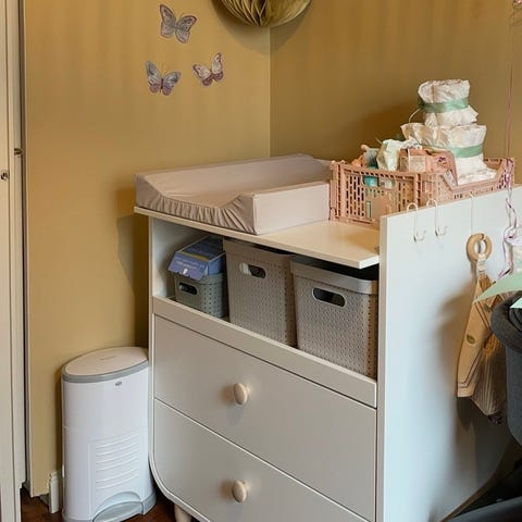 Utöver en skråma på framsidan är skicket bra. Behöver dock ny ”mjuk” skötbädd.