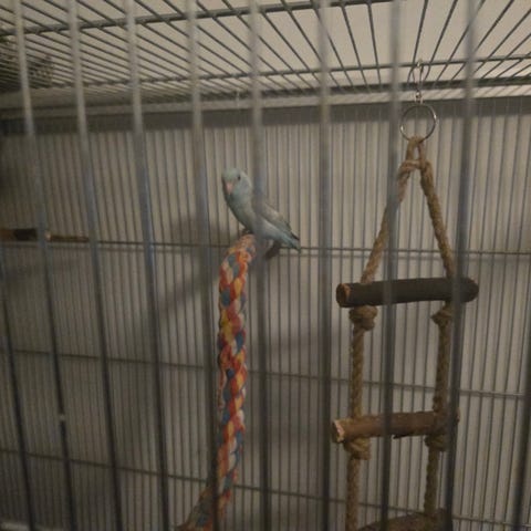 Tam, äter från handen, pussas, klias, står på fingret och man kan plocka honom hur man vill… så helt lugn och snäll.
