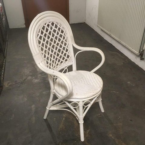 Vit korgstol i rotting. Sitthöjd 43 cm, djup 40 bredd 42