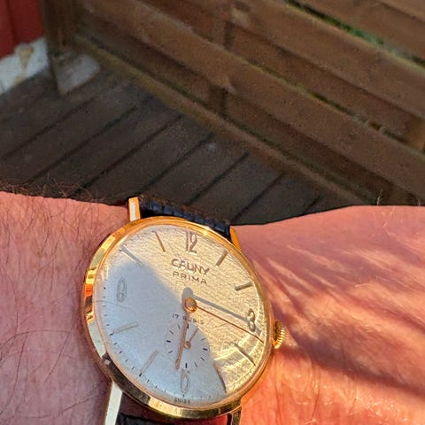 Klockan är i gott bruksskick med normalt slitage (repor finns, se bilder). Den är fullt fungerande.