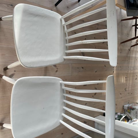 Säljer sex stycken vita karmstolar som är inköpta från trendrum.
