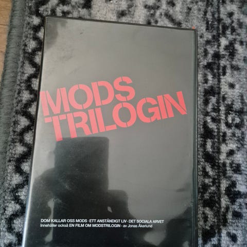 Modstrilogin DVD-box dokumentärfilm. Innehåller dokumentärfilmerna "Dom kallar oss mods", "Ett anständigt liv" och "Det sociala arvet" samt bonusmaterial. Flerdisc-utgåva i fodral med omslagsbild i svartvitt.