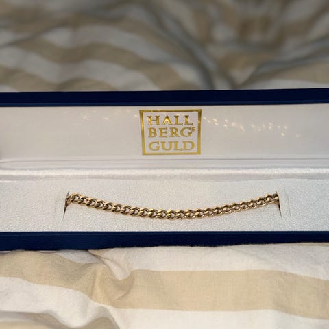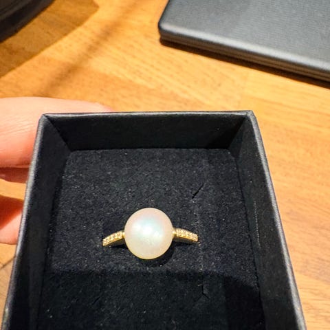 Säljer jättefin hänge i 18 K guld med äkta sötvattenpärla och små stenar