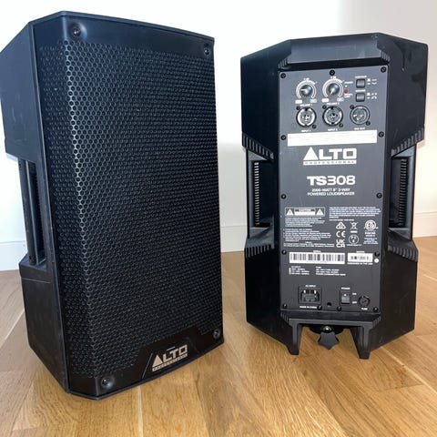 Trapeszoidformad 2-vägs diskohögtalare med professionellt utseende.