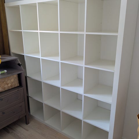 Skänker gammal Kallax hylla som var träfärgad men numera vit efter att jag målat den själv.