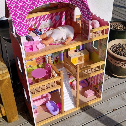 Jag tror huset är till build a bear från början men min dotter har haft det som garderob till sina nallar.
