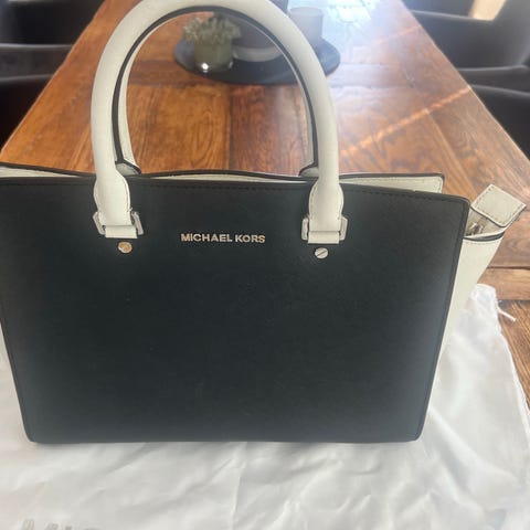 Michael Kors handväska för kvinna i brunt läder. Väskan har två korta handtag och guldfärgade metalldetaljer, axelrem medföljer.. Huvudfacket stängs med blixtlås. Invändigt finns ett foder med Michael Kors-logga, en dragkedjeficka, flera öppna fack samt en mindre innerficka. Passar för vardagsbruk och som arbetsväska med plats för mindre personliga tillhörigheter.