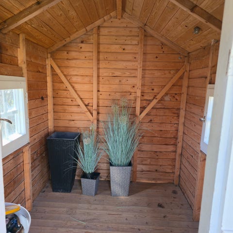 Säljer vår kära trästuga pga flytt! Barnen har lekt timmar i den här stugan - köptes på facebook hemsnickrad av en familj. Finns en ljusslinga inbyggd som tänds med vanlig lampknapp och så en telefon (se bild).