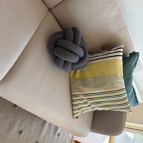 Har legat i ett gästrum. Några släpp finns men inget som påverkar. Skinnet har patina, syns bara på en sida.
