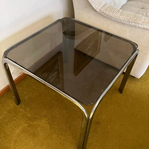Retro soffbord – Krom & Rökfärgat glas