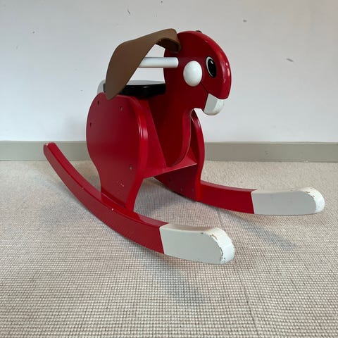 Björn Dahlströms prisbelönta gungkanin är favorit bland barnen. Gungkaninen är en mycket populär designklassiker. Vunnit Utmärkt Svensk Form. Lackerad i klara färger. Öron av läder. Testad och godkänd för barn över 15 månader.