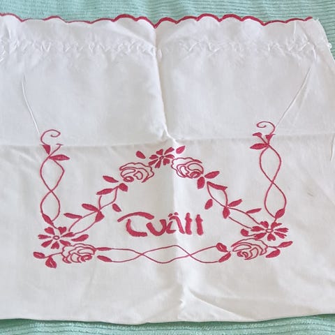 BRODERAT HANDDUKSFÖRHÄNGE - GAMMALT