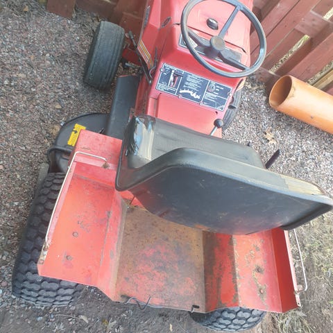 Åkgräsklippare som driver dåligt och har ett dålig batteri men motorn går runt och det sitter en ny förgasare på. Agrigatet medföljer och det är i bra skick. Hela maskinen säljes som rep objekt.