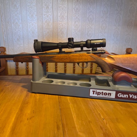 En kanon bössa i mycket fint skick, använd under 18 månaders tid. Skjuter riktigt bra med Sako Blade (162 grains), Norma Golden Target (168 grains) och Hornady Gunrunner (155 grains).