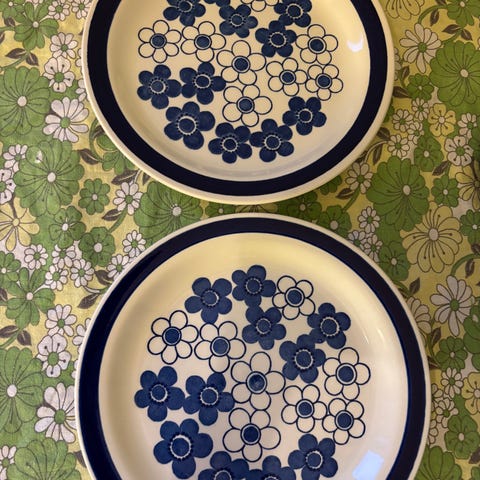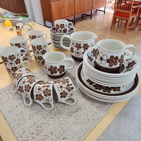Inga nagg men en kopp har repor inuti och en tallrik ett märke under. Se bilder! I övrigt fint skick.