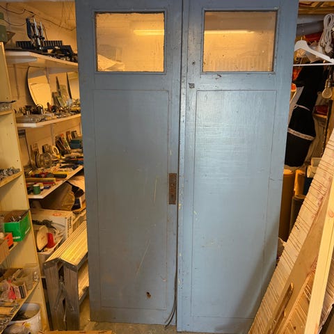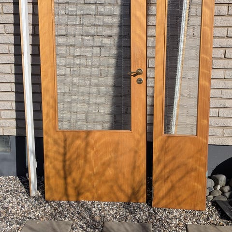 Dubbeldörrar utan karm, går utmärkt att bygga i spröjs., och även att korta ner till önskat lägre mått, varje dörrblad är ca, 228 x 71 cm.