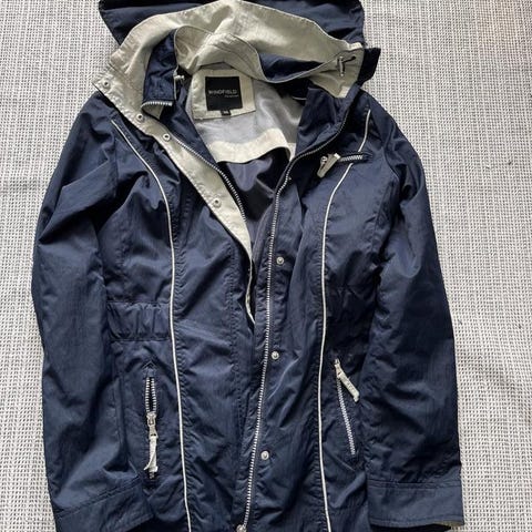 The North Face jacka för dam i storlek M. Jackan är blå och tillverkad i polyester. Modellen har huva och medellång längd med justerbar midja. Framtill finns dragkedja och tryckknappar samt fickor med lock. Passar som ytterjacka vid vardagsbruk och utomhusaktiviteter.