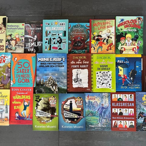Samling med B. Wahlströms ungdomsböcker i inbundet format. Böckerna på bilderna inkluderar titlarna "Spökande gruvans gåta" och "Skrikande spegelns gåta" ur Alfred Hitchcock-serien, "Sandra och den okända hunden" samt "Tjabo och örnligan". Passar som läsning för barn och ungdomar eller som komplettering till en samling av B. Wahlströms ungdomsböcker.