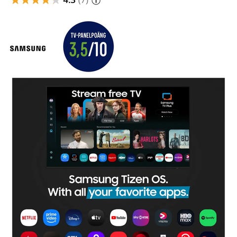 Samsung tv 49” 4k UHD. Modellen har tunn profil och står på mittmonterat stativ. Anslutningar och portar är placerade på baksidan av tv:n.