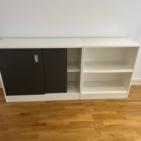 Bokhylla vs dokumentskåp med låsbar underdel med snygg jalusi