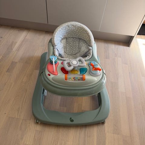 Beemoo Play Explore lära gå stol i färgen sage green. Den är som ny och helt fräsch, använd ett fåtal gånger bara. Finns att hämta på Gärdet i Stockholm