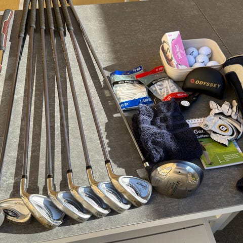 Komplett damset (halvset) med driver, fw3, hybrid, j7, j9, PW, SW, och putter.