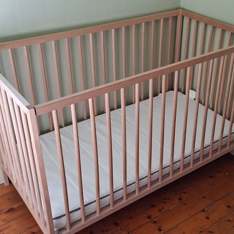 IKEA spjälsäng trä naturfärg