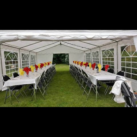 Partytält vikbart ställning med blåvit duk