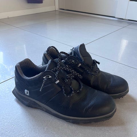 Skorna har ovandel i textil och syntet i huvudsakligen vit färg med beige, röda och mörkblå detaljer. Snörning framtill och vadderad krage för stabilitet runt fotleden. Yttersula i gummi med mönster för grepp.
