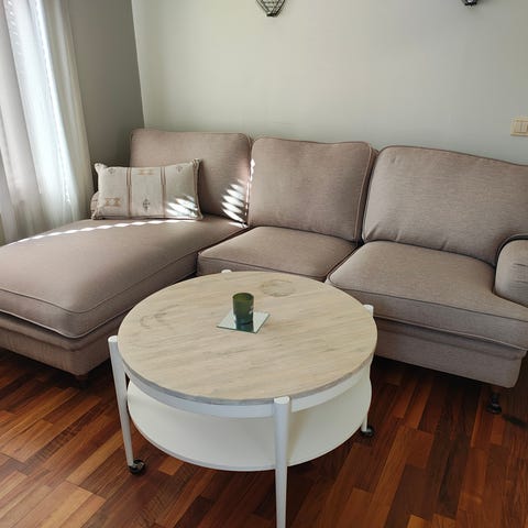 Säljer en hörnsoffa 2 5-Sits+Divan Höger med svarta ben+Nackkuddar (Delux)som är köpta tillbehör.Nackkuddarna är I samma tyg och färg.