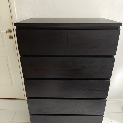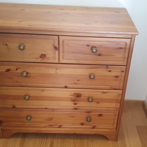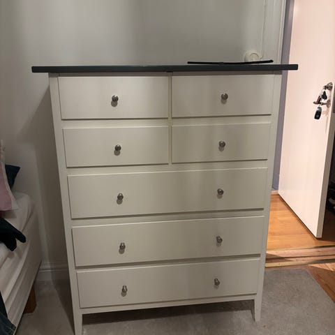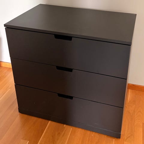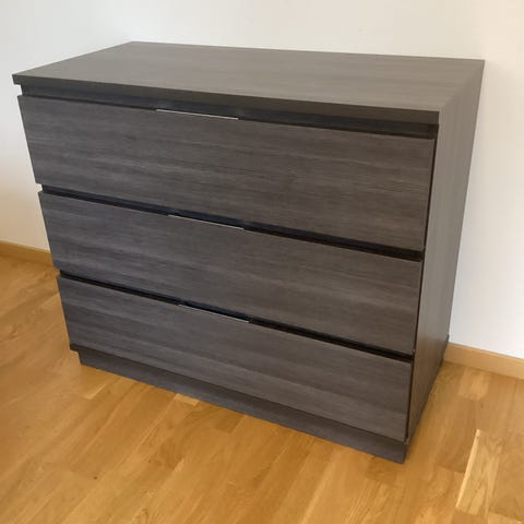 Byrå av modell Kullen med tre lådor. I stort i bra skick, men finns några mindre skönhetsfel utvändigt och invändigt (se bilder). De två översta lådorna kärvar lite när de ska öppnas, men funkar ändå som de ska. Går säkerligen att smörja vid behov. Finns i centrala Linköping i lägenhetshus med hiss.