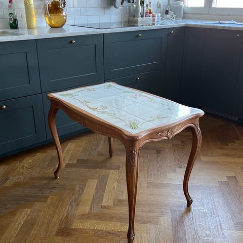 En väldigt fin marmorskiva som är äkta. Med tillhörande bordsben till. Men benen de sitter ej fast i skivan. Så valbart att byta borsben.