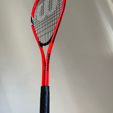 Ramlisten har släppt något på ett ställe, men racket är sparsamt använt. Strängarna är i bra skick.