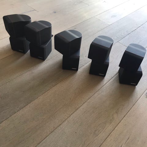 Bose 401 högtalare i vitt utförande. Direkt/reflecting-högtalare med Stereo Space Array-teknik. Impedans 4 ohm enligt märkning på baksidan. Modellen består av en vänster- och en högerhögtalare (Part 1 – Left och Part 2 – Right). Anslutning sker via traditionella högtalarterminaler på baksidan. Lämpliga för användning i hemmabio eller stereoanläggning där man önskar fristående golvhögtalare.