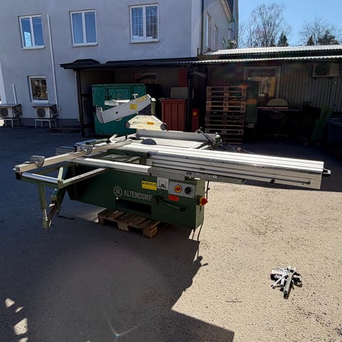 Justersåg. använd till dags datum , lasthjälp finnes, går bra. mått l 1400mm b 1100. bredd med arm 2300 mm