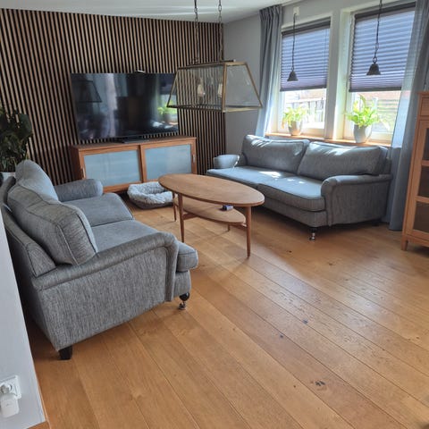 Svängda soffor, i fint använt skick. Någon soffkudde har ett litet hål men i helhet är de mycket fina.