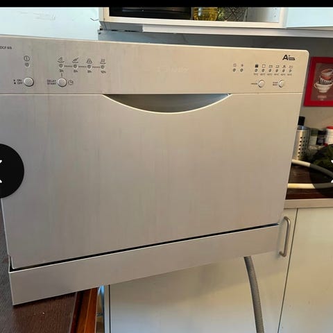 Candy bänkdiskmaskin i vit färg. Fristående modell som placeras på bänk. Invändigt finns korgar och bestickkorg för organisering av tallrikar, glas och bestick. Passar för mindre kök, exempelvis i lägenhet, studentboende eller som extra diskmaskin. Ansluts till vatten och avlopp enligt tillverkarens anvisningar.