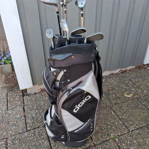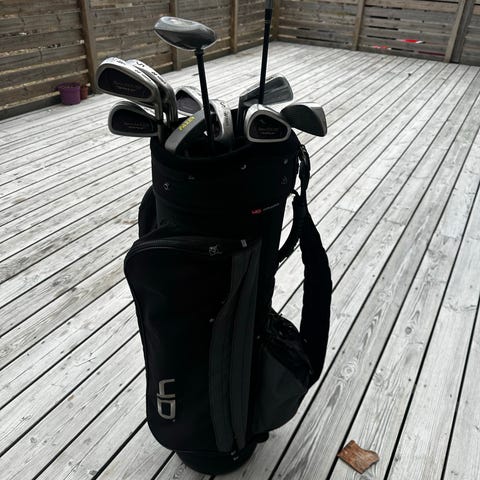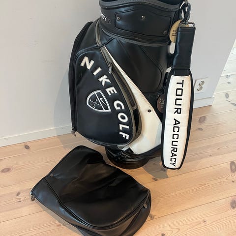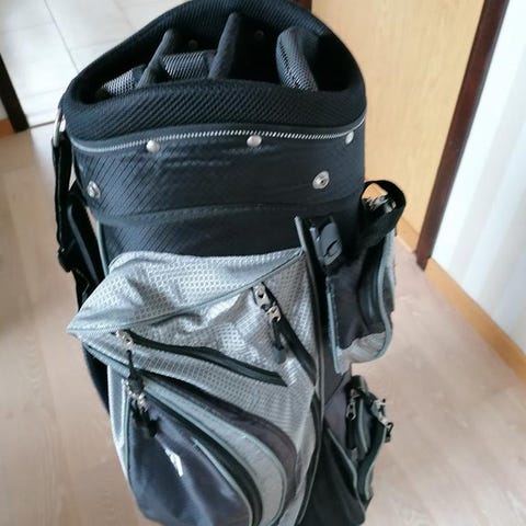 Dry Performance golfbag i grått och svart. Väskan har flera ytterfickor med dragkedja för förvaring av bollar, handskar och tillbehör. Bärrem på sidan samt handtag upptill för enkel hantering. Passar för förvaring och transport av golfklubbor på bana och range. Ca 6 månader gammal . Allt ingår .