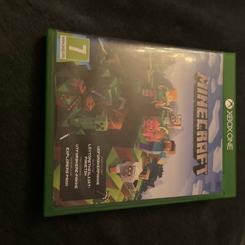Microsoft Minecraft spel för Xbox One. Fysisk utgåva på skiva i originalfodral. Omslag och skiva visar standardversionen av spelet med PEGI 7-klassificering. Passar Xbox One-konsoler som stöder fysiska spel på skiva.