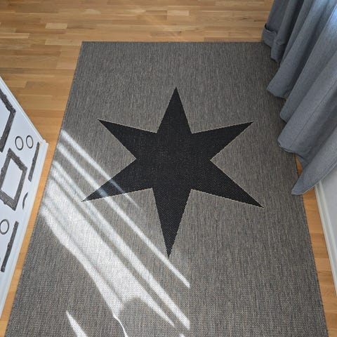Gångmatta från Oriental Weaver (ej Åhlens) i grå/beige med svarta stjärnor.