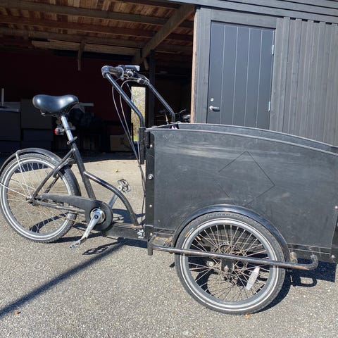 Jättefin cargobike utan EL. Funka bra. Tillbehör på bilderna er inkluderad. Tyvärr får vi inte använt den.