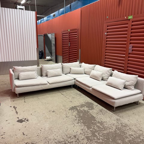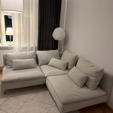 Soffa ”Söderhamn” från IKEA. Består av 3 moduler, (2st + hörnmodul). Medföljer även 2 extra ben om det önskas. Eftersom det är en modulsoffa och har en hörndel går modulerna att sättas ihop hur man vill. All klädsel är avtagbar och går att maskintvättas!