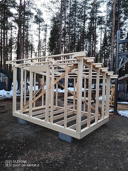 1 st Byggsats som skulle monteras i Norge 2025. Återhämtad. Säljas billigt UTAN plåttak paketet, ytgolvet (råspont golvet) och slag dörrarna. Annars komplett. Slagdörrar +2500,- ink gångjärn och skjut regel.