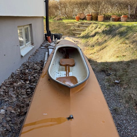 Prijonkajak i bra skick En stabil och skön kajak att paddla Bra lastutrymme. Paddel och kapell medföljer