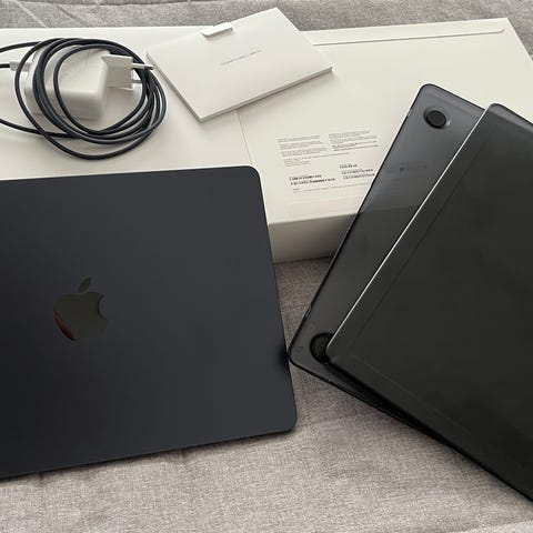 Apple MacBook Air 13" laptop med Apple M3‑chip, 13‑tumsskärm, 8 GB enhetligt minne och större 512 GB SSD‑lagring. Levereras med originalkartong, nätadapter och laddkabel. Mycket lite använd då jag har fler datorer. Funkar förstås perfekt, knäpptyst, sval och snabb. Funkat fint för musikproduktion, men jag sitter oftast med min stationära så den blev inte så använd som tänkt… Fabriksåterställd och redo för nästa användare!