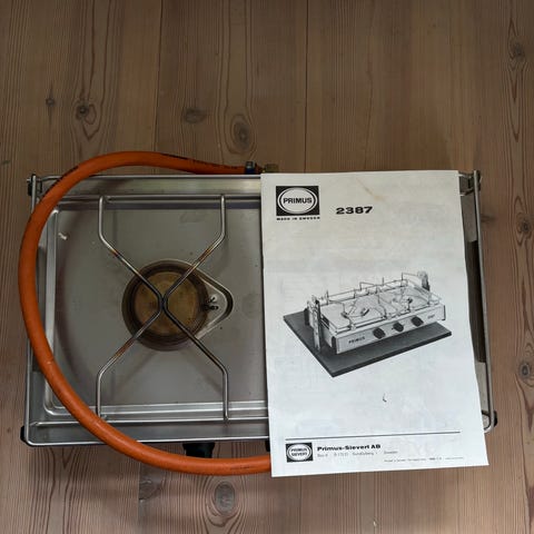 Säljer ett klassiskt portabelt gasolkök från Primus i snygg retrodesign.