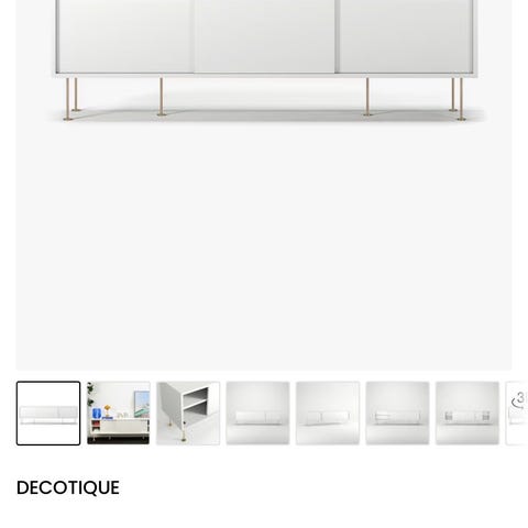 Vogue mediabänk från Decotique med en stomme med tre skjutdörrar, sex ben.