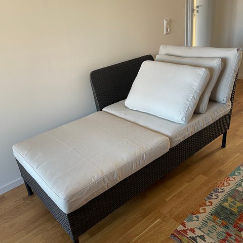 Ikea revskär utesoffa. Cirka 1 år gammal. Stått på inglasad balkong hela tiden. Nypris 6300. Först till kvarn.
