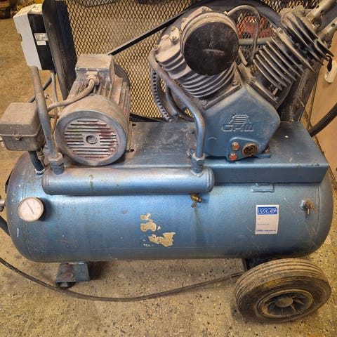Kompressor på 1,1kw. 154 liter/minut. Max 8 bar.
