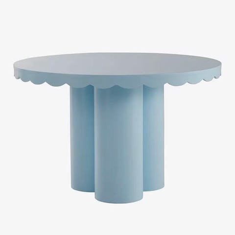 Fint litet bord i pulverlackad metall med vågig nederkant (i stället för ben eller sarg).